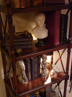 Sometimes you get lucky and get invited to an enchanting home for dinner. Christy invited a group of us to dinner tonight. Arriving, I felt as though I was in Paris, in an exquisite apartment, and being treated to a dinner by a private gourmet chef. Christy has a collection of beautiful crystal, silver and art that creates a magical home. I love her talent for mixing heirlooms and new finds and creating a cozy space of her own. I had to share pictures of her home with you.